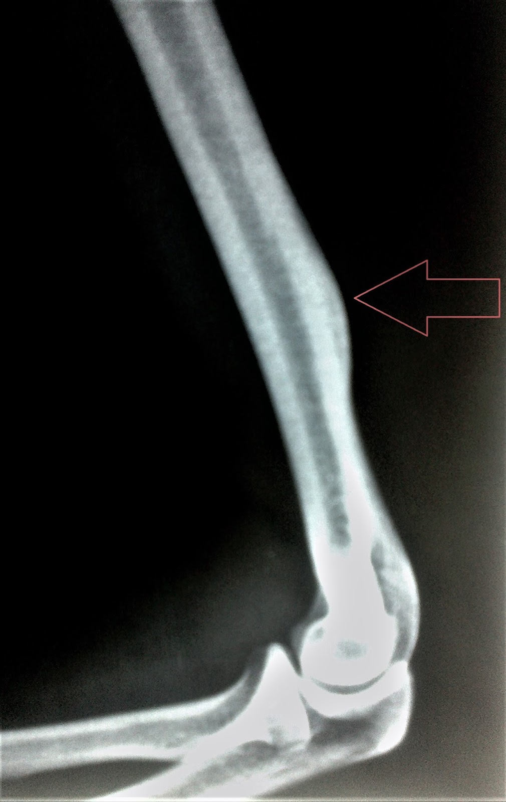 Osteoid osteoma has characteristic night pain that gets dramatically relieved on taking NSAIDS. The radiograph also depicts localised cortical growth, however, CT scan in thin section around the lesion is better I investigation.